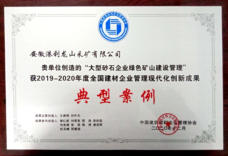 全國建材企業(yè)管理現(xiàn)代化創(chuàng)新成果獎